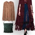![]() The Burberry Prorsum Fall 2015 collection, 'Patchwork, Pattern and Prints' showcased 70's inspired chic bohemian style. Floral and fringe dominated the runway and each look was as inspiring as the last. The suede fringe cape was my favorite. The elderberry colored cape retails for €7,250! You can buy a similar style at Mango in cognac for €99,99! This neutral color would look great paired with dark denim and bordeaux over-the-knee boots. The Burberry Prorsum show always introduces a new style of handbag featured in that seasons favorite colors and embellishments. The Fall 2015 collection showcased the 'Bucket Bag' in two sizes, prints, suede and of course fringed. Pictured here is a dark green fringed suede bag by Mango. Bucket shaped, jewel tone and fringed - embodies everything necessary to pull off a Burberry Prorsum inspired look.