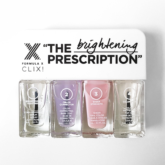 ![]() ![]() ![]() Formula X CLIX! are convenient quads that hold four mini nail polish, serum, or cuticle oil (depending on the set), meant to restore your nails of most common nail issues. Each bottle is 0.1 oz (super tiny) and a great for travel. The sheer color and top coat have earned a permanent spot in my toiletry bag. I love these little sets! The Formula X CLIX! Brightening Prescription is meant to remove stains and offset discoloration. Step 1 - The brightening treatment serum is applied first and dissolves quickly. Step 2 - The color correcting base coat has a light purple hue that combats yellow stains. This color corrector is not as thick as polish and can probably be used alone for a quick color-pick-me-up. Step 3 - The sheer color is the perfect pale pink (my favorite). Step 4 - Although it is clear, the color plus top coat kinda looks holographic and has a slight hint of blue color. Only four coats and you have brighter nails. The color is pretty, but a little too blueish for me. It could be that I don't have nail discoloration, so there is no color to neutralize and the blue stands out more. Of course, I purchased this set cause it's mini! I also purchased The Strengthening Prescription, The Hydrating Prescription and The System To Go - I will post reviews soon.